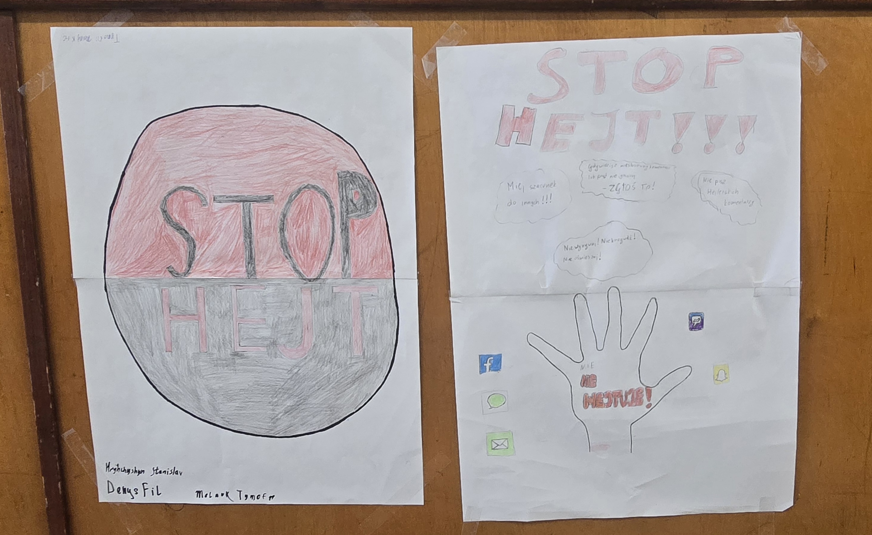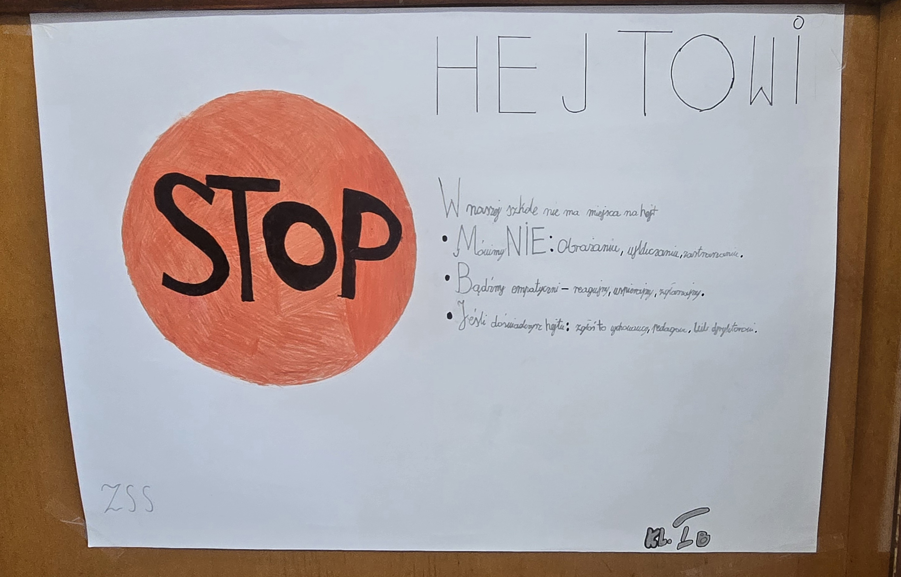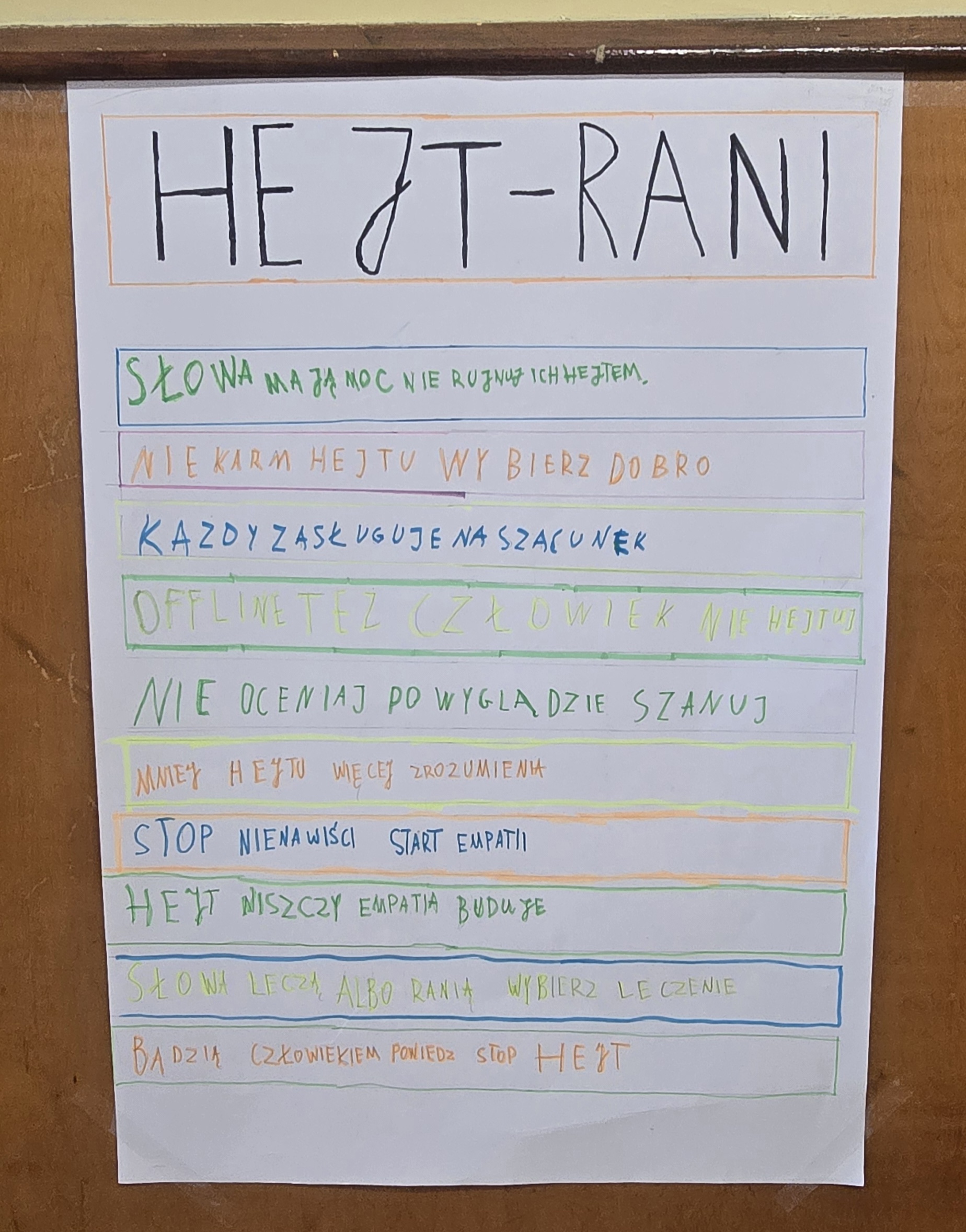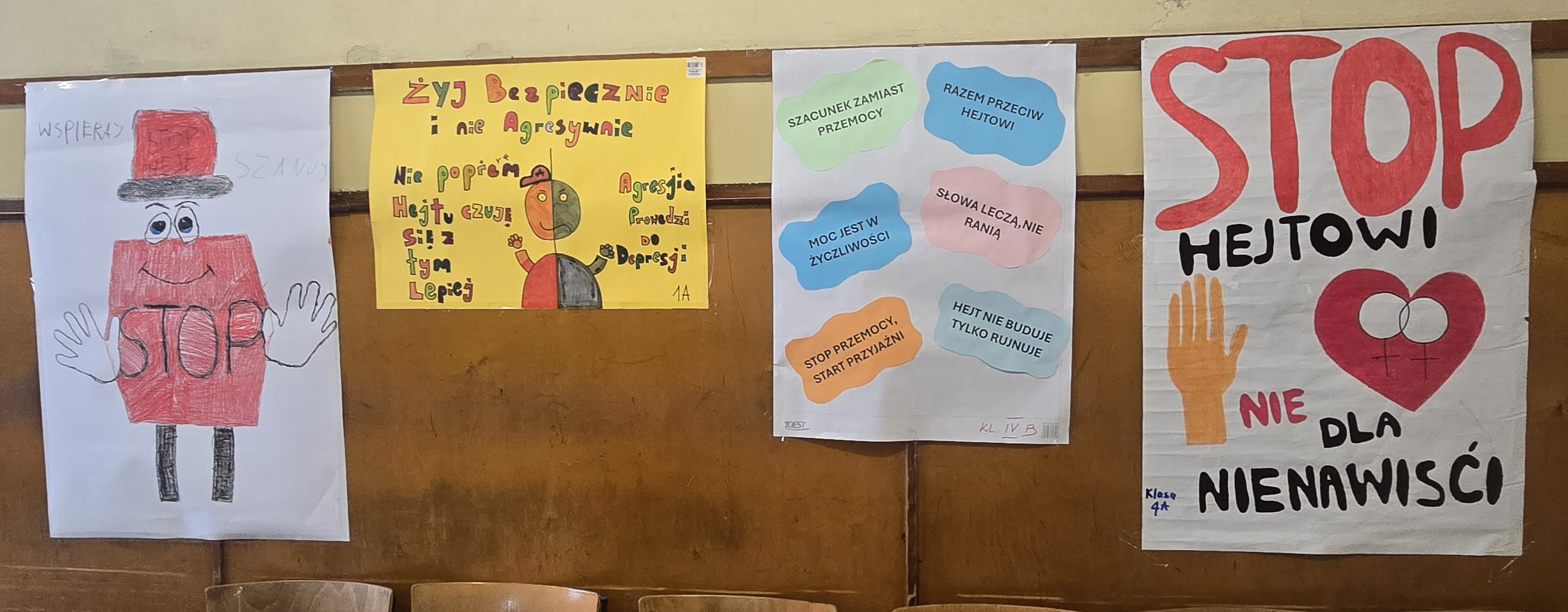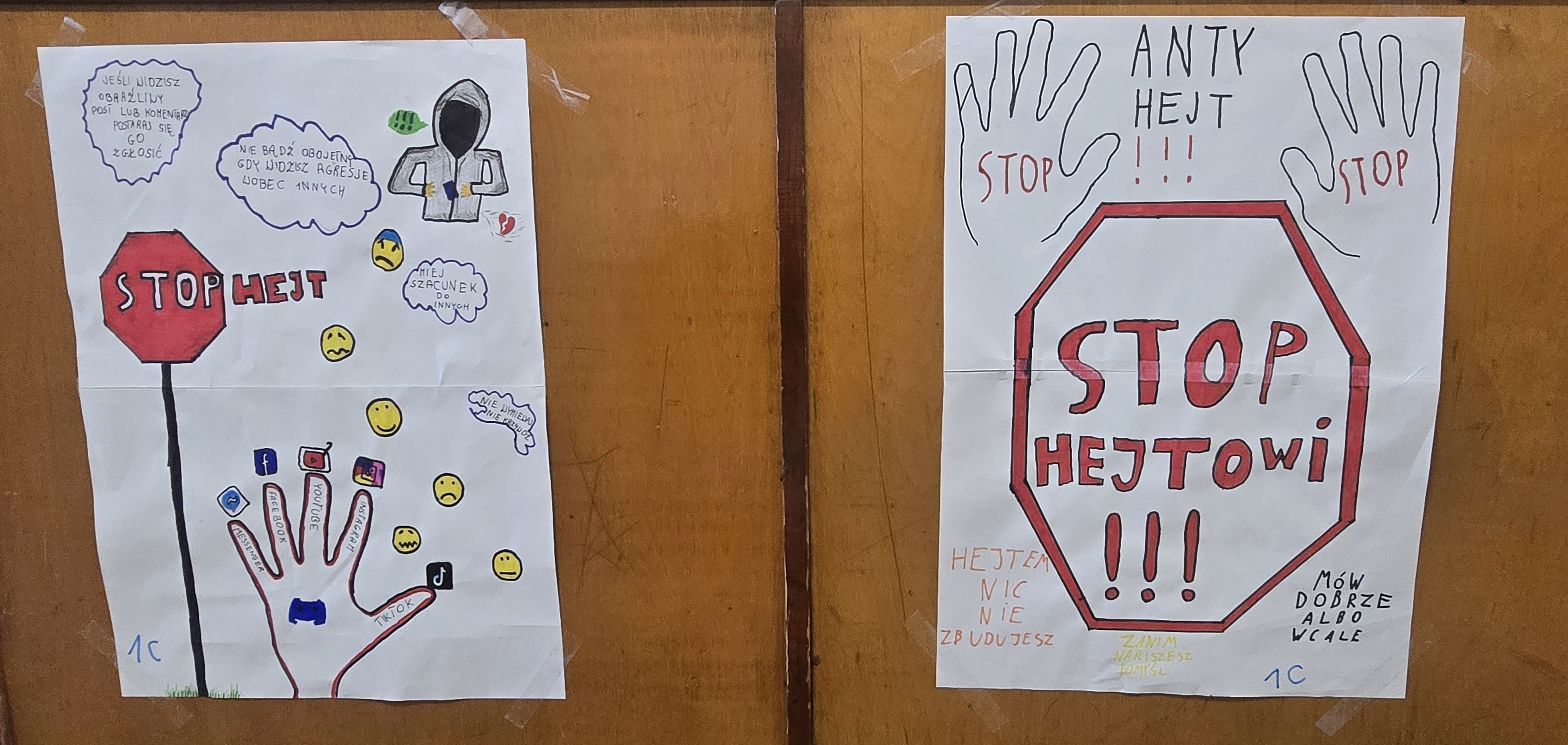W ramach corocznej kampanii "Hejtowi i Agresji mówimy Stop/Nie" w dniu 8 października 2025 r. zostały przeprowadzone prelekcje zorganizowane przez Straż Miejską w Łodzi. Klasy zaprezentowały również pracę z w/w tematyki w konkursie plastycznym. Laureatami zostali: 1 miejsce klasa 1c, 2 miejsce klasa 1a, 3 miejsce klasy 1b i 1 mk. Wyróżnienie otrzymał plakat autorstwa Oleksi Kostvarov z klasy 2b. Wszystkim gratulujemy. Organizatorem kampanii, jak i zajęć ze Strażą Miejską był p. Bartłomiej Ropelski.