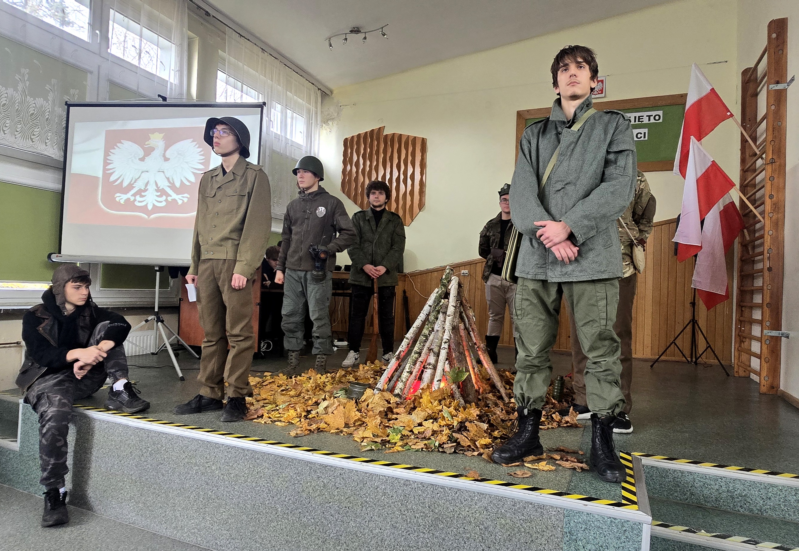 12 listopada 2025 odbyła się akademia z okazji Narodowego Święta Niepodległości. Uczniowie klasy 4 a uhonorowali bohaterów zrywów i walk narodowowyzwoleńczych, dzięki którym dziś cieszymy się z wolnej Polski. Mogliśmy poczuć chwile radości, ale także zadumy i refleksji. Na koniec wybrzmiały słowa papieża, Jana Pawła II, którymi uczył nas współczesnego pojmowania patriotyzmu. Akademię przygotowała klasa 4a pod opieką p. Małgorzaty Leszki i p. Bartłomieja Ropelskiego. Szczególne podziękowania kierujemy do Michała Granata i Kuby Mrulewicza, za wypożyczenie strojów. Dziękujemy również uczniom kl.4 b za pomoc przy realizacji akademii.