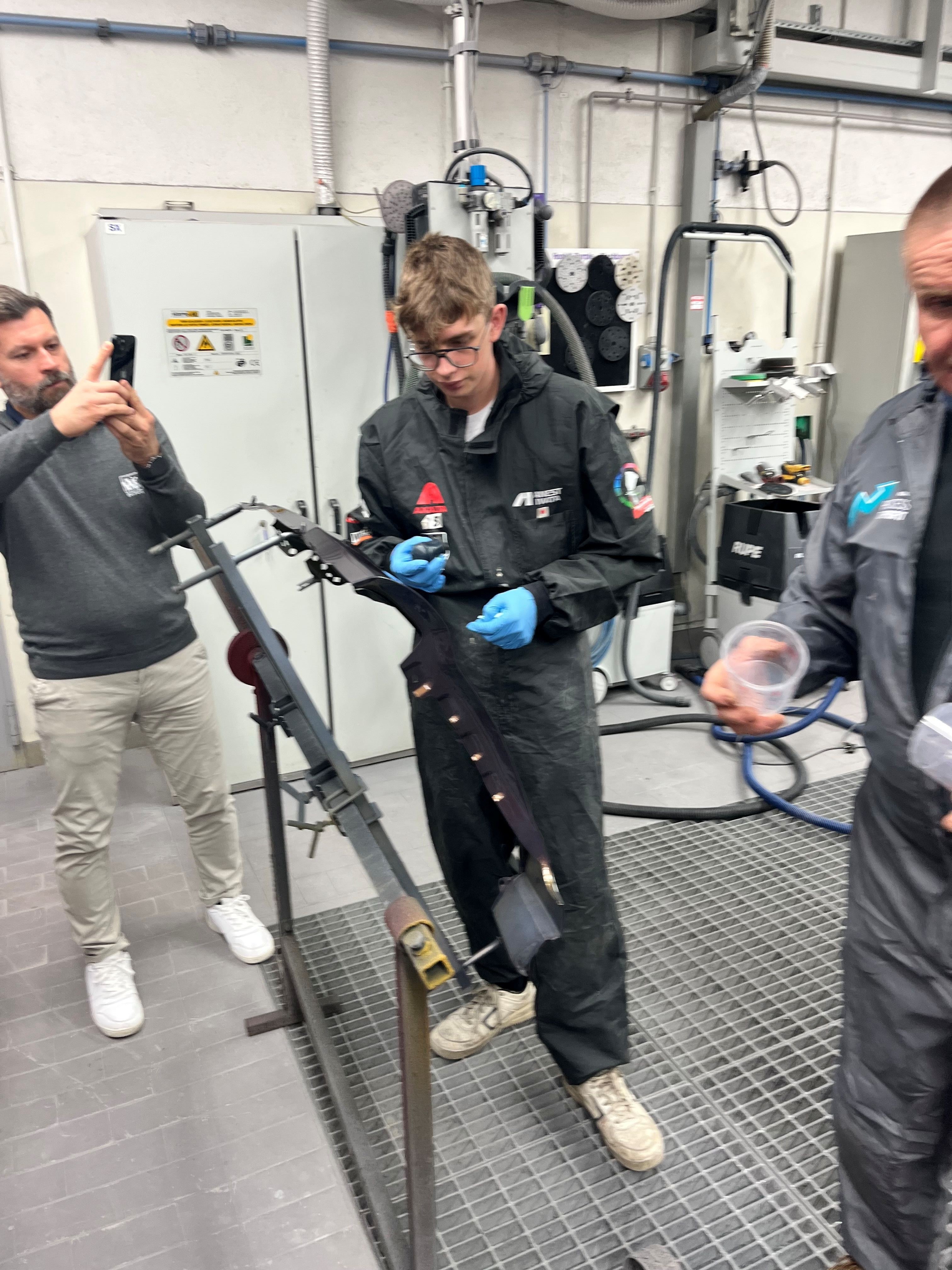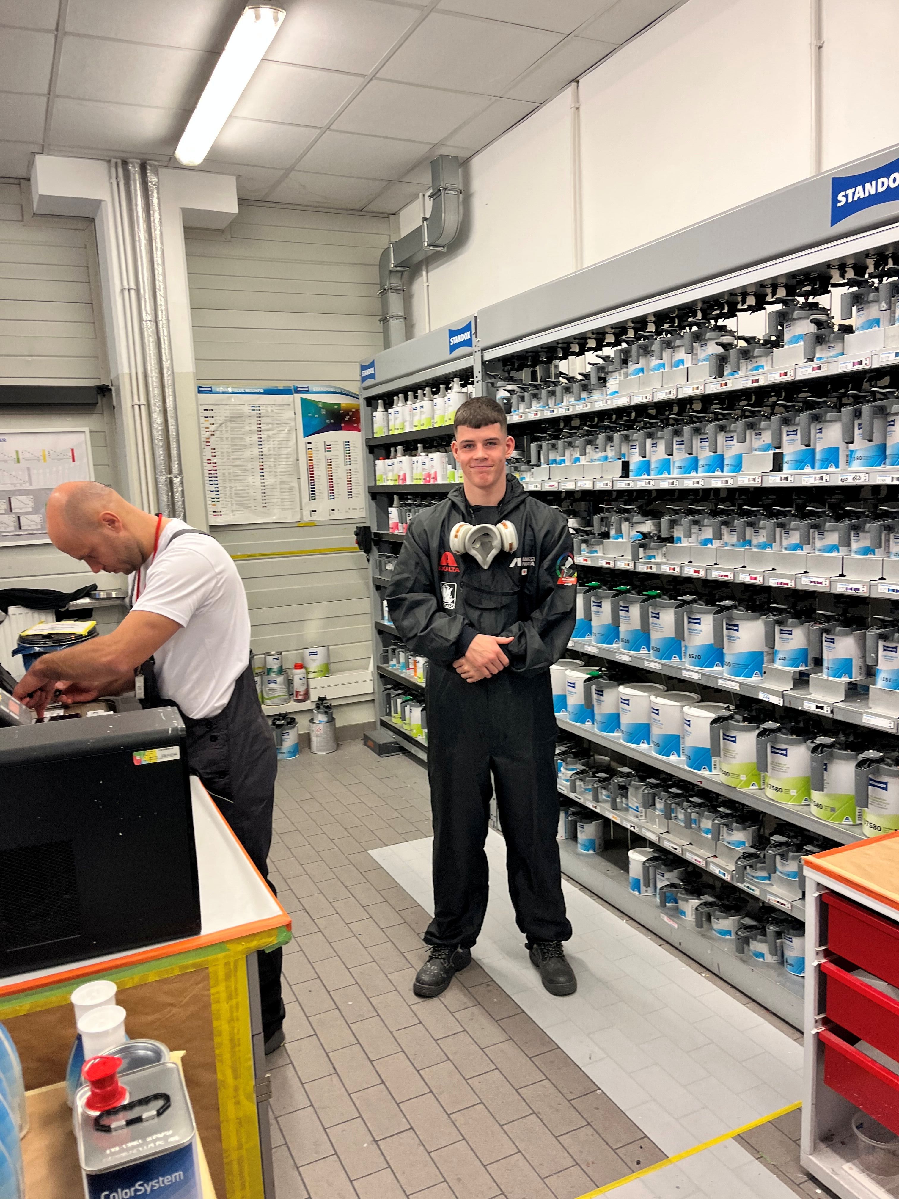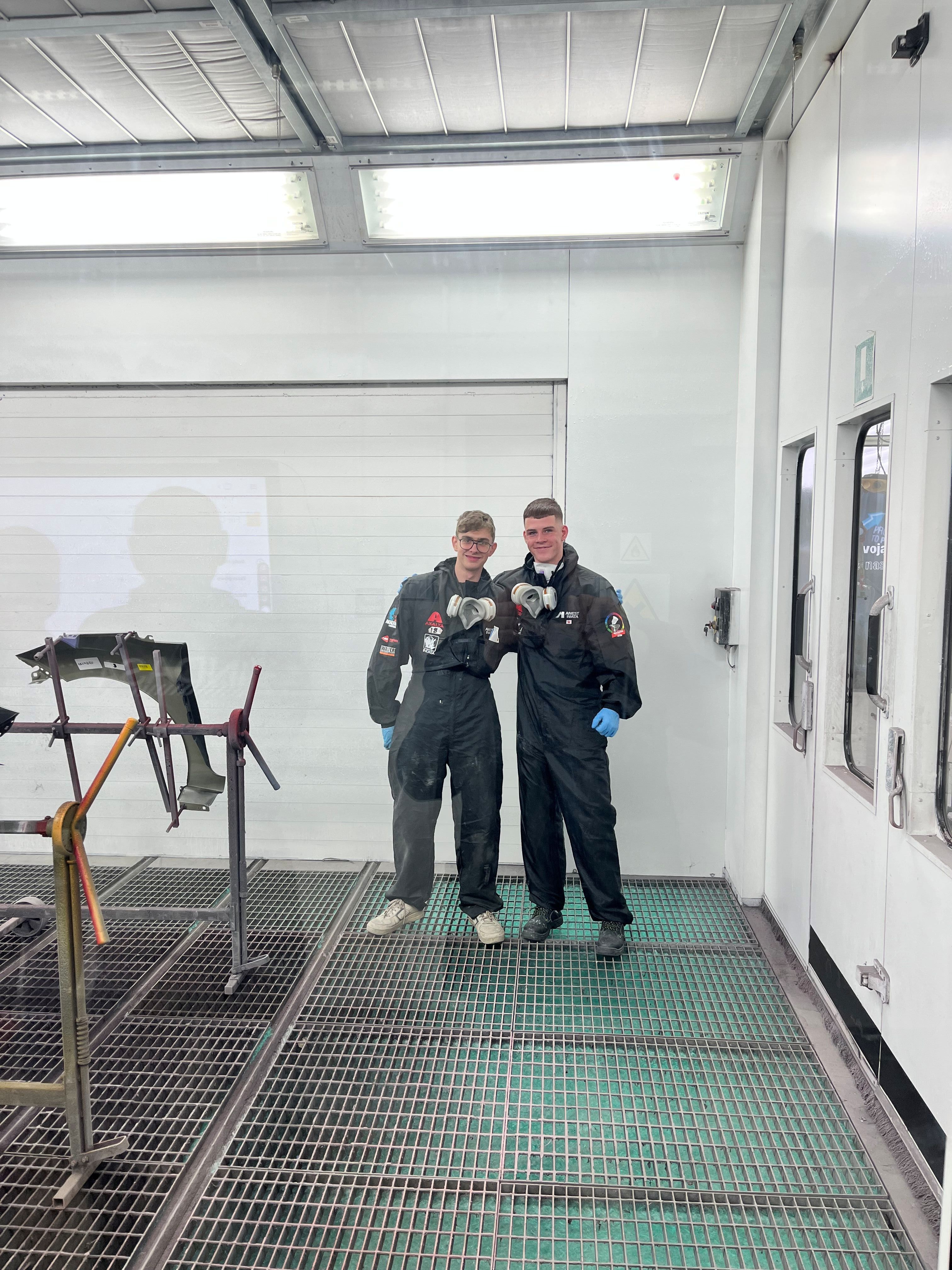 W dniach 23.10.2025-24.10.2025 uczniowie klasy 3els Wiktor Małolepszy i Krzysztof Stefański, pod opieką nauczyciela Andrzeja Madziary, przebywali na szkoleniu w Centrum Szkoleniowym Axalta Coating Systems ul. Świerkowa 1C 05-850 Bronisze. Szkolenie było nagrodą za zdobycie III miejsca w Finale XIV Ogólnopolskich Mistrzostw Mechaników w kategorii Młody Lakiernik. Uczniowie zapoznali się z budową profesjonalnej lakierni, najnowszymi procesami technologicznymi, materiałami lakierniczymi i narzędziami stosowanymi w renowacyjnej naprawie powłok lakierniczych.