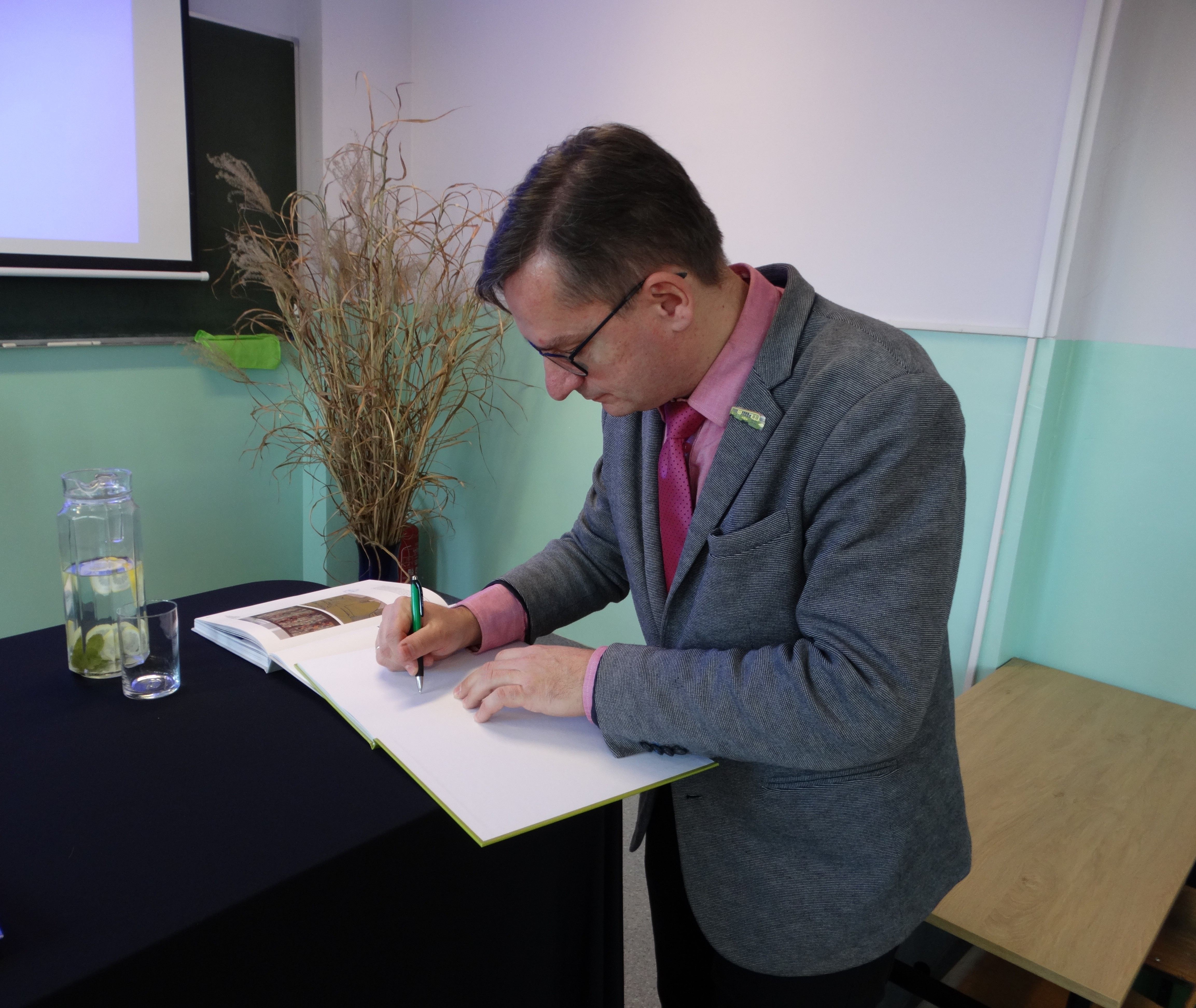 Spotkanie zakończyło się podpisaniem książek należących do zbiorów biblioteki szkolnej i rozmowami indywidualnymi uczniów z naszym gościem.
