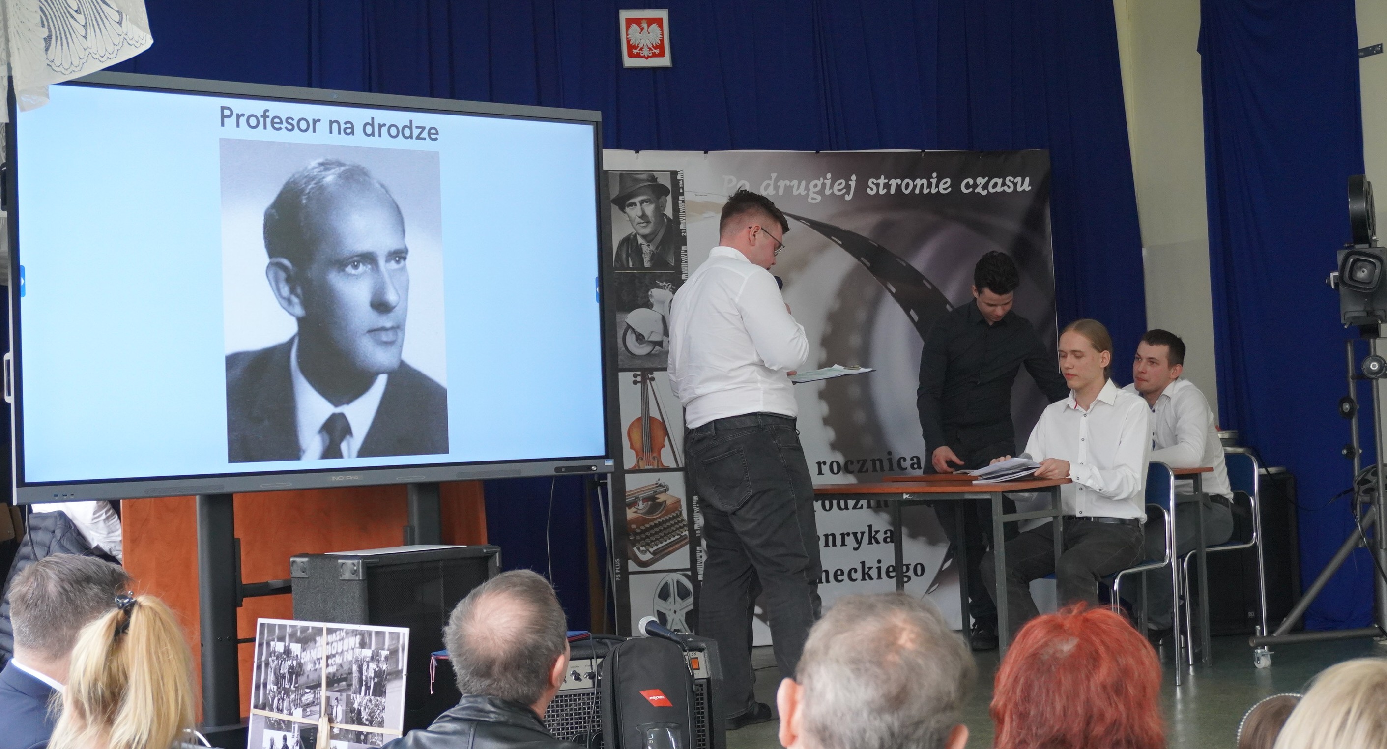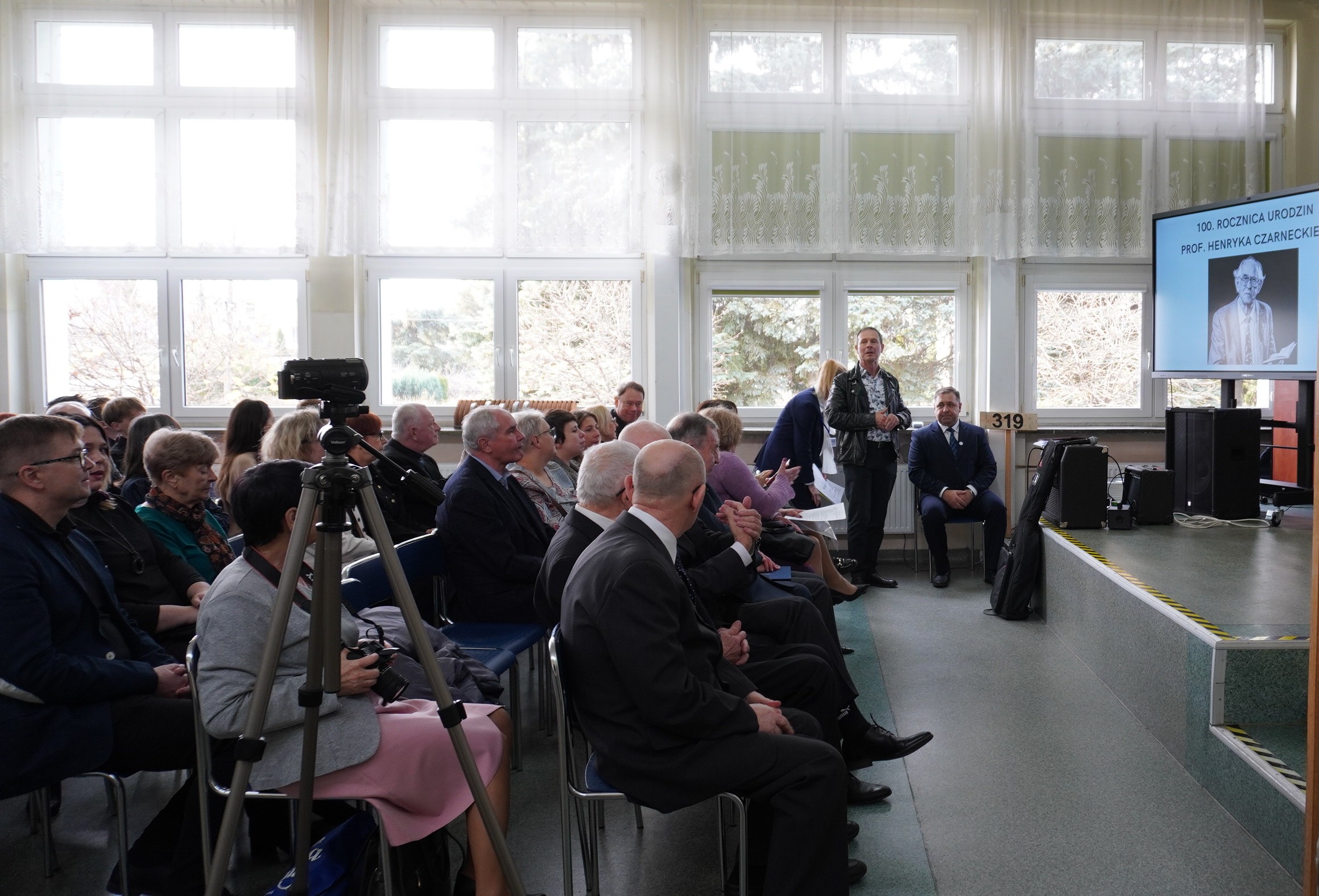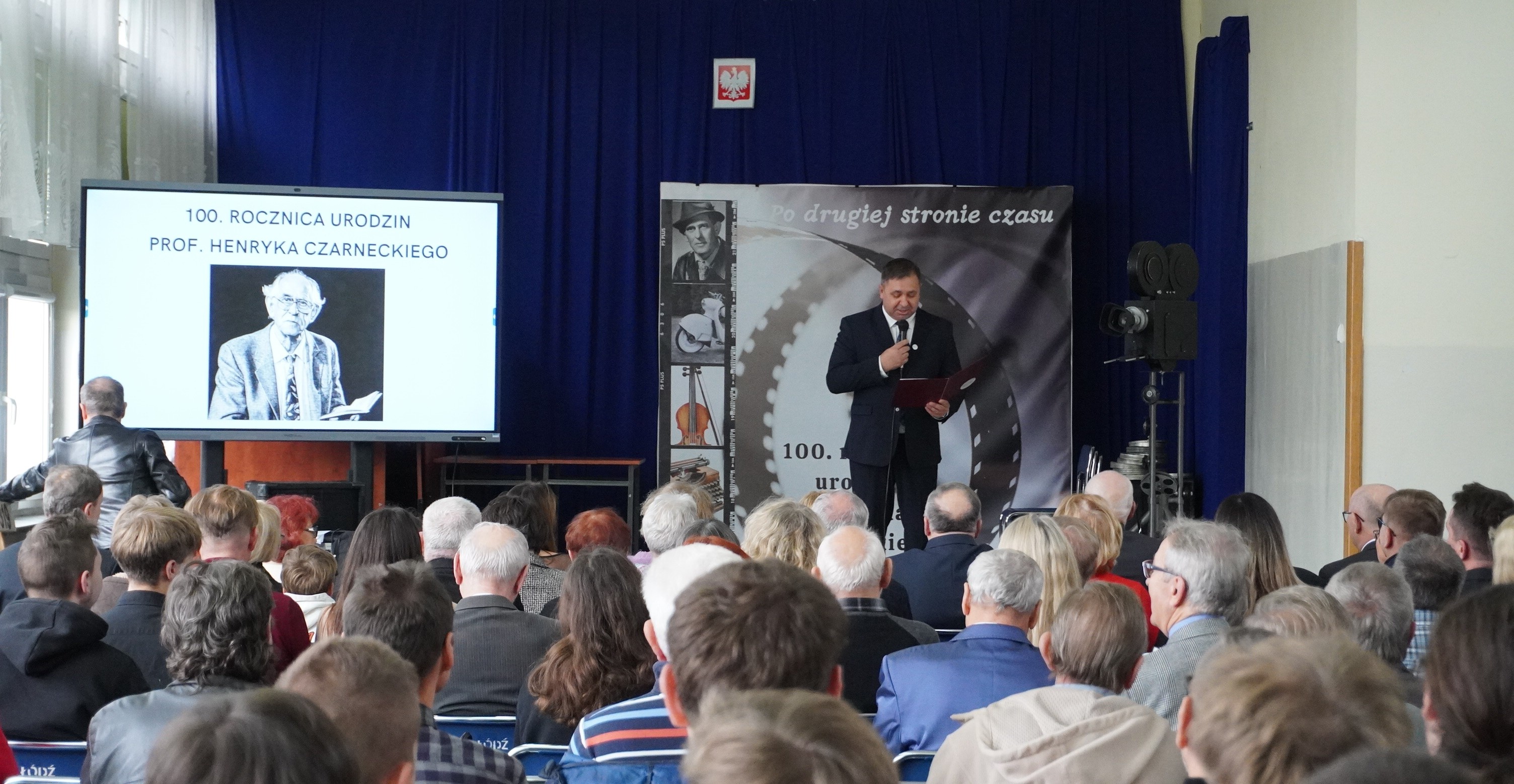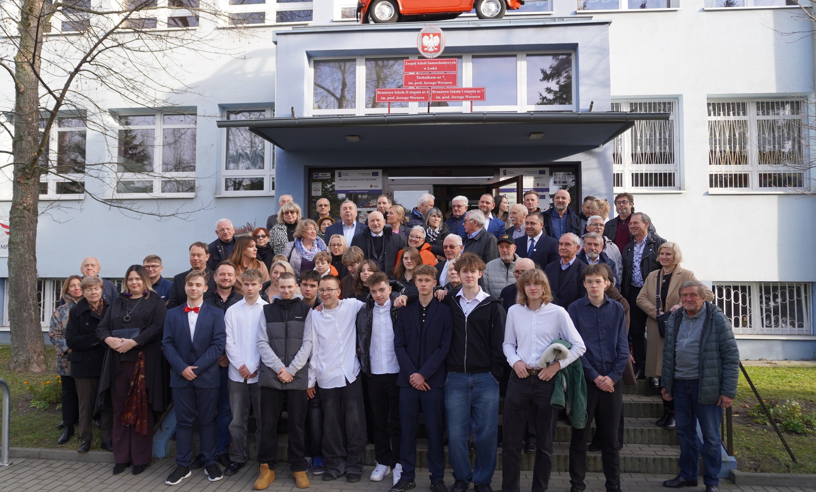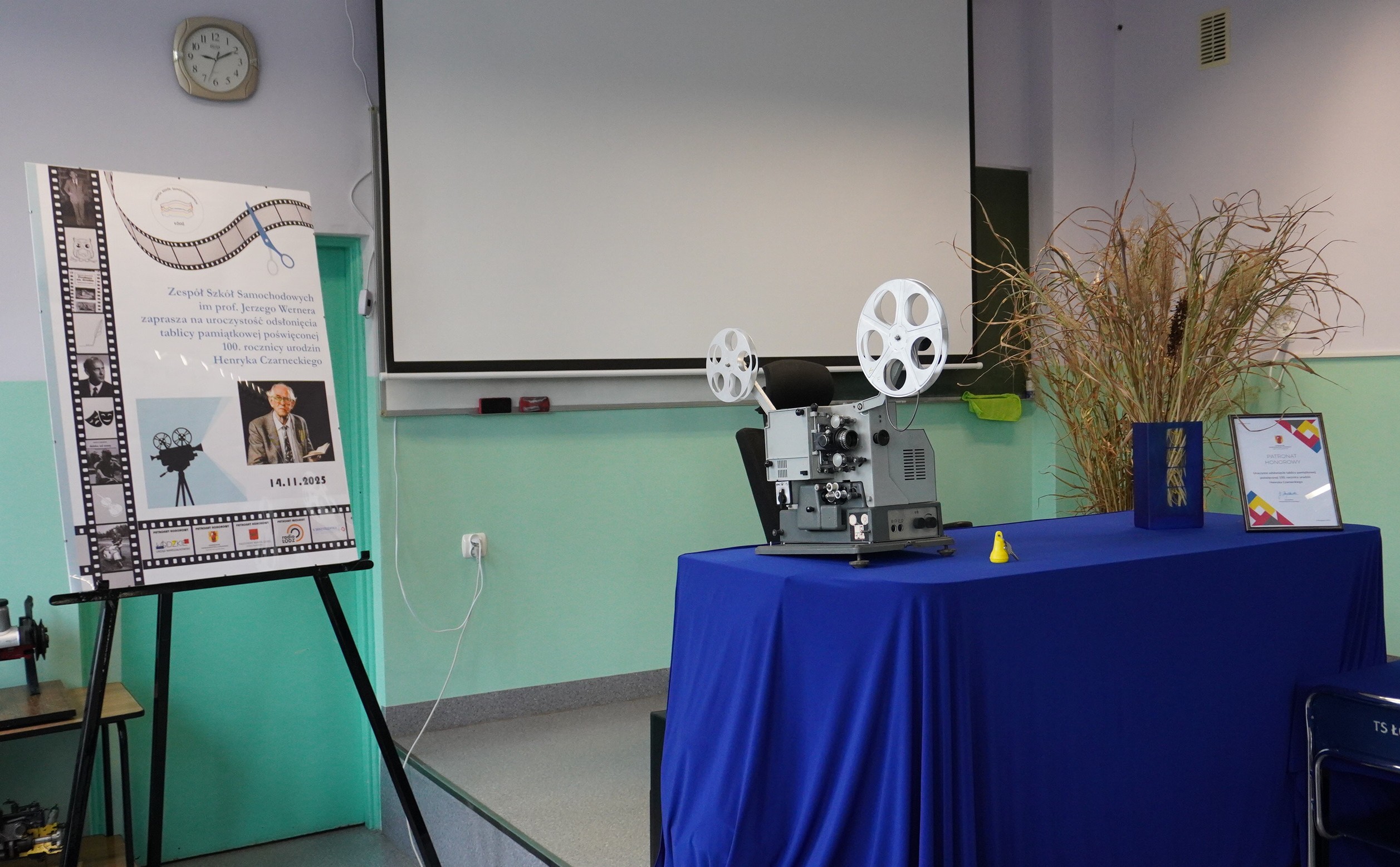 W piątek, 14 listopada 2025 r., w naszej szkole obchodziliśmy setną rocznicę urodzin profesora Henryka Czarneckiego - pedagoga, pisarza, scenarzysty, który przepracował w Samochodówce 24 lata jako nauczyciel języka polskiego. Miło nam było gościć rodzinę profesora Czarneckiego, przedstawicieli władz miejskich i wojewódzkich, przedstawicieli branży samochodowej, absolwentów. W części artystycznej, przygotowanej przez klasę 5A pod kierunkiem prof. Grzegorza Łuczyńskiego i wychowawcy Anny Jezierskiej- Wnuk, przypomniano życiorys Profesora i jego twórczość (utwory poetyckie, fragmenty książek ,,Profesor na drodze”, ,,Daleko od szosy”). Pani Dominika Czarnecka- aktorka Teatru Muzycznego w Łodzi, żona syna Profesora- odczytała ostatnie opowiadanie H. Czarneckiego pt. ,,Monika”. Uczniowie odegrali humorystyczne scenki na podstawie fragmentów książki ,,Profesor na drodze”. Nie brakowało też partii muzycznych i wokalnych wykonanych przez młodych artystów Samochodówki. Goście mieli również okazję obejrzeć zdjęcia z serialu ,,Daleko od szosy”, w których wykorzystano wnętrza naszej szkoły. Pani Sławomira Łozińska, odtwórczyni roli Bronki w tym serialu, nieobecna z przyczyn zawodowych, przesłała życzenia, które zostały zaprezentowane na ekranie. Po części artystycznej nastąpiło odsłonięcie tablicy upamiętniającej profesora Czarneckiego. Umieszczono ją przed szkołą, obok ławeczki i gwiazdy Profesora (odsłonięte w zeszłym roku). Fundatorem tablicy jest pan Witold Skrzydlewski - przedsiębiorca, absolwent Samochodówki i uczeń profesora Czarneckiego. Po poczęstunku w sali 119 wszyscy wzięli udział w uroczystym otwarciu pięknie wyremontowanej pracowni polonistycznej imienia Henryka Czarneckiego (sala 319). Następnie niektórzy uczestnicy udali się na cmentarz Doły w Łodzi i złożyli kwiaty na grobie Profesora. Był to dzień pełen refleksji i wzruszeń…