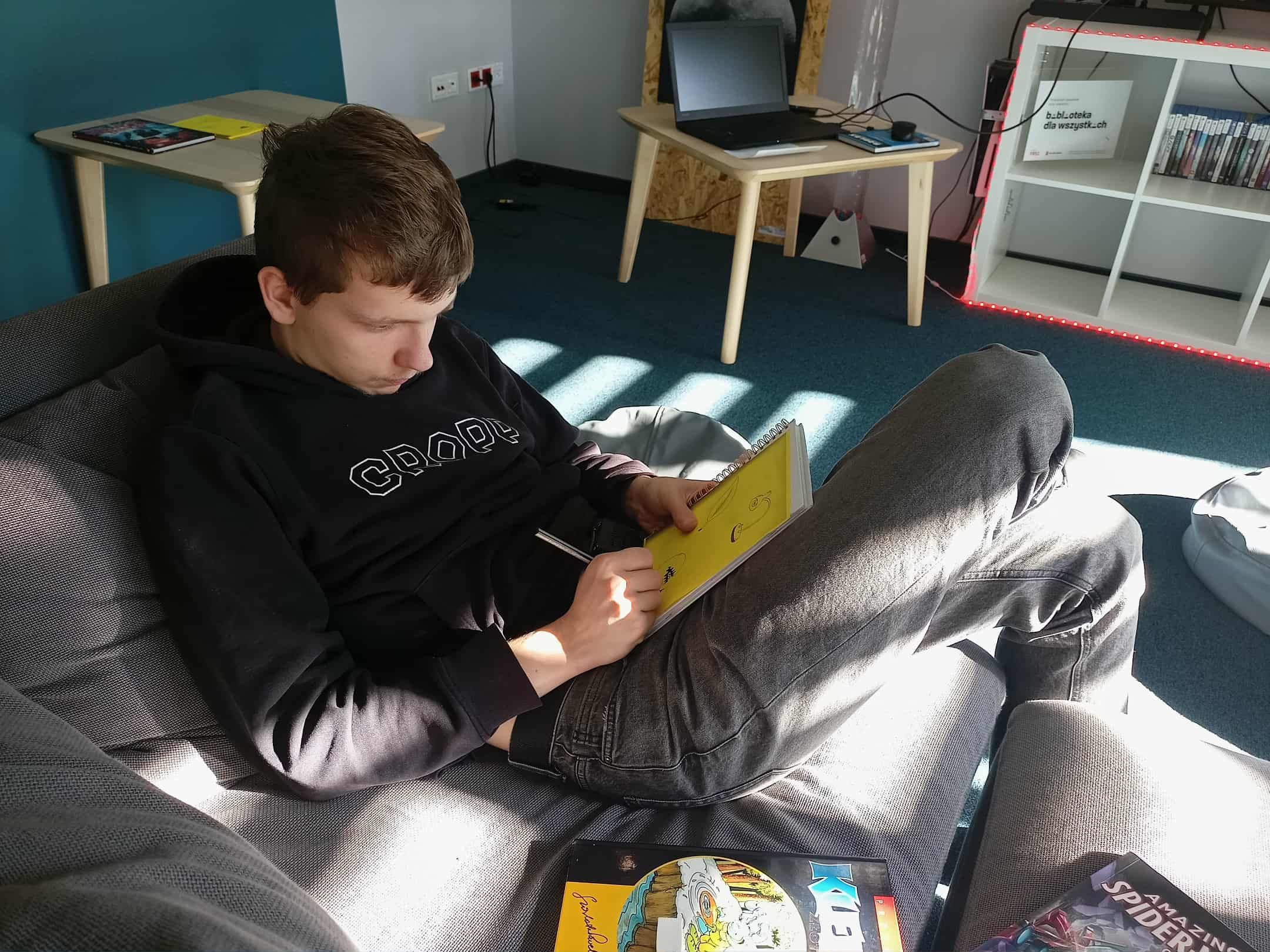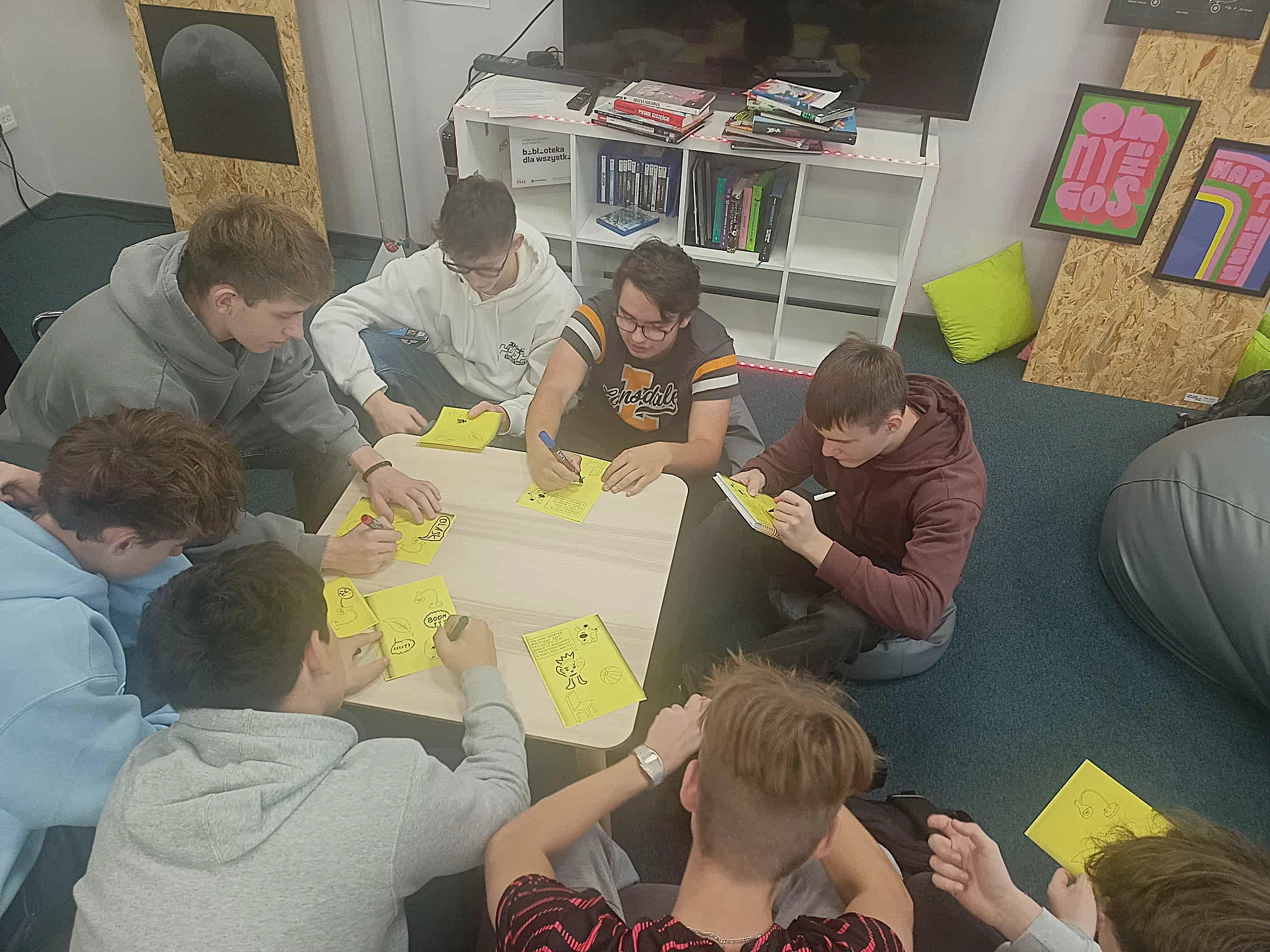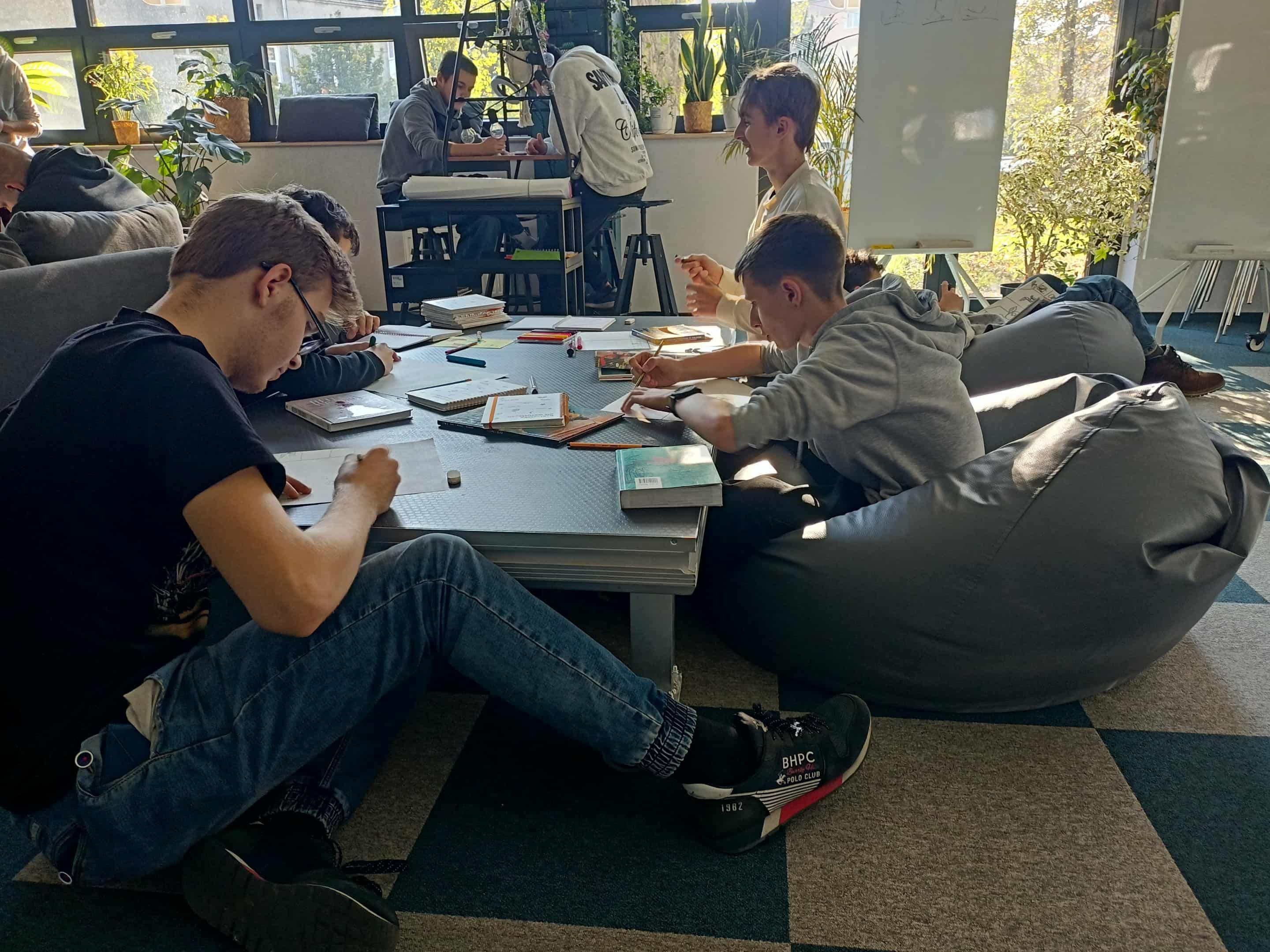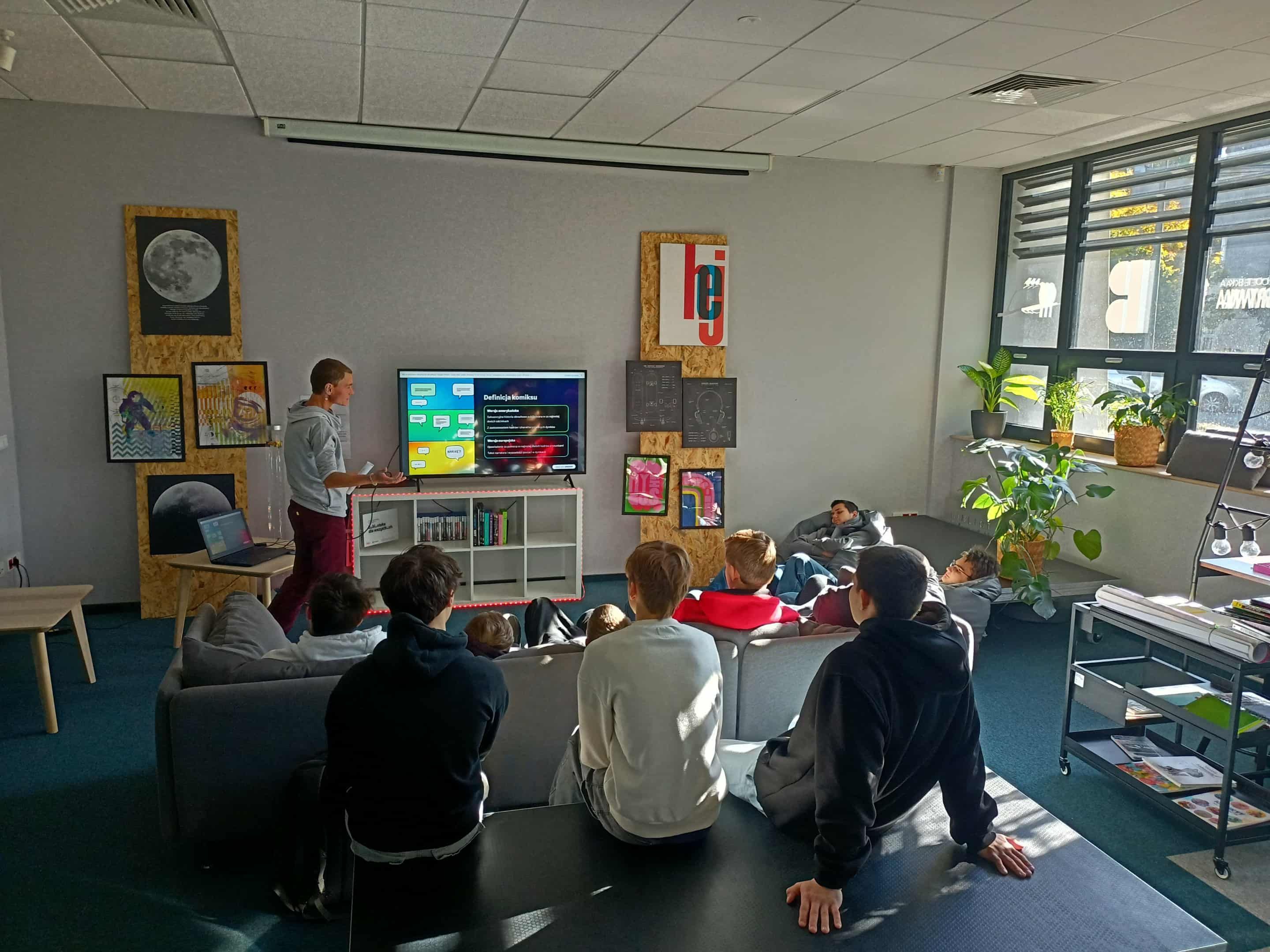 W październiku uczniowie klas drugich technikum odwiedzili bibliotekę publiczną Rozgrywka, w której uczestniczyli w zajęciach poświęconych komiksowi. Wysłuchali krótkiej prelekcji na temat historii komiksów, a następnie podjęli pierwsze próby stworzenia własnych historyjek obrazkowych. Zajęcia miały na celu przygotowywanie ich do zadania polegającego na przekształceniu fragmentu wybranej lektury szkolnej na komiks.