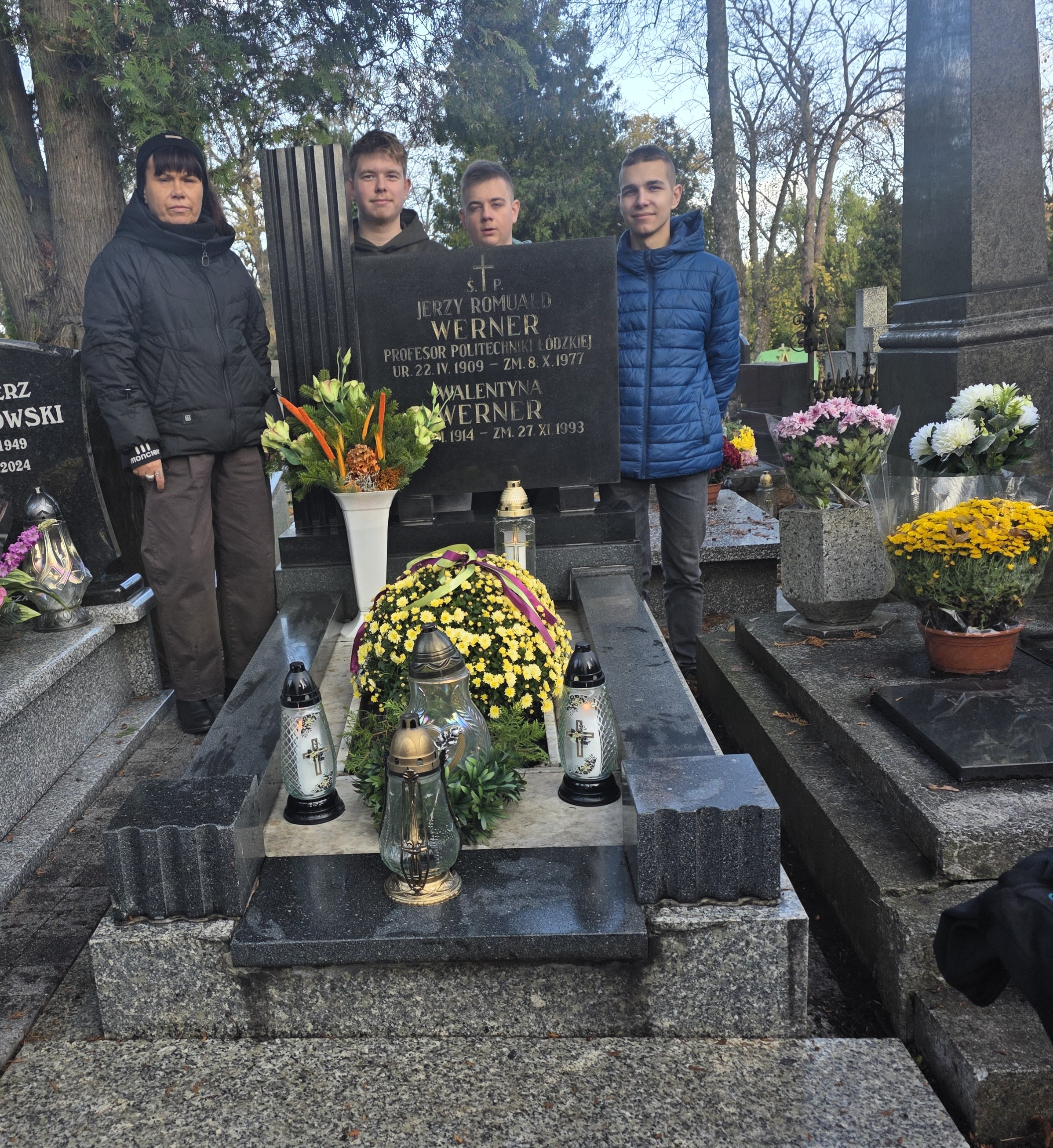 Zbliża się Dzień Wszystkich Świętych i Dzień Zaduszny, z tej okazji w dniu 29.10.2025r. przedstawiciele klasy 4b wraz z panią wicedyrektor Joanna Grzelewską posprzątali grób, zapalili znicze i umieścili kwiaty na pomniku Patrona Szkoły prof. Jerzego Wernera.